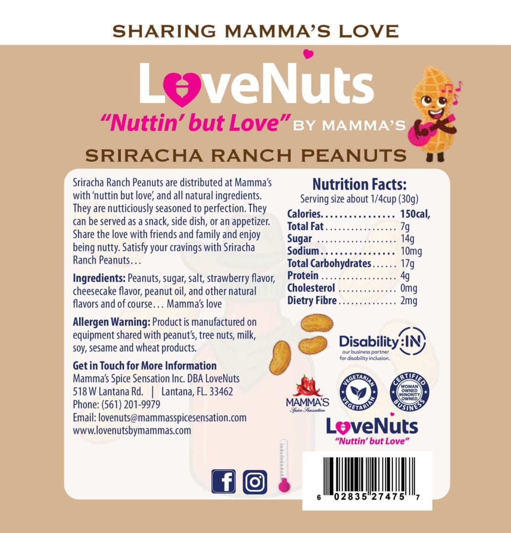 Treat yourself to a bold, crave-worthy snack handcrafted with love and spice! LoveNuts by Mammas are small-batch, gourmet nuts packed with flavor and personality. Each 5oz bag is a perfect grab-and-go treat—whether you’re snacking solo, sharing with friends, or pairing with your favorite drink.